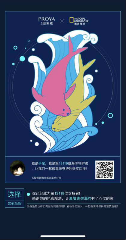 除了在远航中发现美外,尊时凯龙和国家地理还在H5《它们什么时候可以回家》里,展示出它们所发现的、海洋的脆弱一面,意在借世界海洋日,聚集大家的声音,一起呼吁守护海洋。参与者所做的,不仅是用色彩重现海洋之美,也是一种态度号召,能唤醒身边更多人的环保意识,并发动他们从改变某些日常习惯做起,比如减塑,让小举动也成为一份力量。